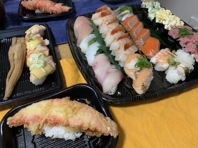 コロナの渦中なので、いつもはお店で食べていましたが初めてテイクアウトで購入! せっかくなので、期間限定の2倍盛りのメニューを☆ コーン、ネギトロ軍艦、普段の3倍くらいあるカニカマ天にびっくりしましたが美味しくて食べ応えバツグン! 個人的に穴子の一本握りが気に入りましたが、いつもあるわけではないようなのでまた食べられたらいいなと思います☆ (投稿:2020/07/19 掲載:2020/07/20)