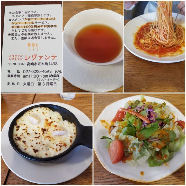 二十歳のお祝いに息子が行ってみたいと言うので行ってきました。(日)13時半くらいでお店はいっぱい。口コミの通りサラダ大盛。私はホタテのドリアと紅茶。主人と息子はスパゲッティ。写真はモッツァレラのです。私が写真撮ってる間にどんどん食べてしまうし撮れなくて残念。どれも優しい味わい。スパゲッティの量も他よりも少し多いかな。2人はケーキも食べましたが美味しくあっという間に食べてしまっていました。スタンプカードもあります。 (投稿:2020/02/17 掲載:2020/02/17)