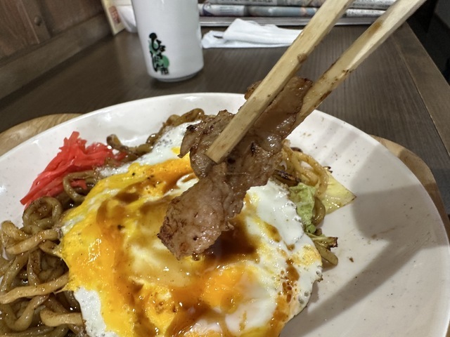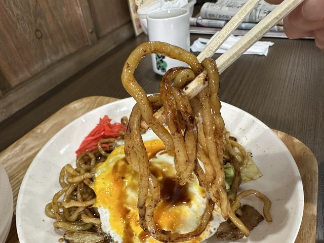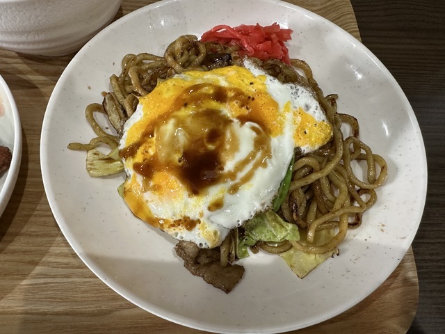●2025年12月11日(木) 晴 11:35訪問 11:52着膳。 ●今回は、メニューを見てお勧めと思われる「ランチセット(並盛焼きそば+おにぎり+ポテトサラダ+漬物+おかず2品+スープ)600円」と「焼き卵50円」を注文して店員に写真撮影の許可を頂きました。 ●カウンター席で温かいお茶を飲みながら待っていると17分後に発注した「ランチセット」が着膳しました。 ●ランチセットの焼きそばは、キャベツ、豚肉、紅生姜、卵焼きが盛り付けてあり、食感の良い太縮れ麺とソースの相性が良くて美味しかったです。 ●おにぎりは、お皿におにぎり、ポテトサラダ、漬物、ちくわ揚げ、山芋の磯辺揚げ等が盛り付けてありました。 ●ポテトサラダは、カレー風味がして美味しかったです。 ●スープは、ワカメと刻みネギの入った中華スープで美味しかったです。 ●雰囲気の良いお店でリーズナブルな美味しいランチを味わう事ができるので、又、訪問したいと思います。ご馳走様でした。 (投稿:2025/12/11 掲載:2026/02/19)