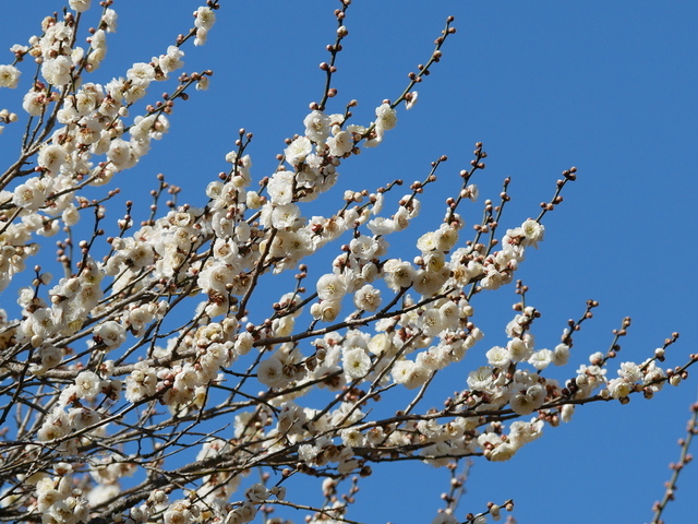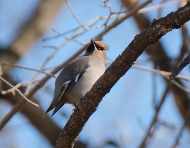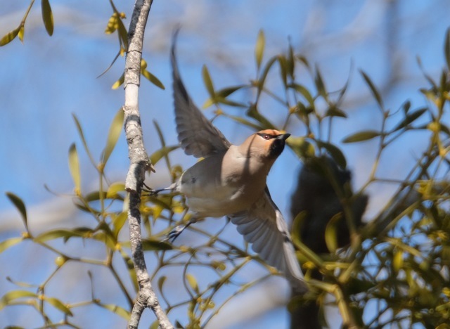 そろそろレンジャクが来ているかな?とウォーキングを兼ねて出かけました。カメラマンが集まっていて、いるのかなと見たのですが枝に隠れて見えません。待っているのは嫌なのでそのままお散歩、ツグミ、シジュウカラ、ヤマガラはやたらと見かけました。ヤドリギの木の実もたくさん見えますがレンジャクはなかなか見えず奥のほうまで行くとヤドリギの実を食べるレンジャクが木の上の方にいました。ここでもカメラマンが数名構えていました。キレンジャク、ヒレンジャクともにいました。あえてよかったです。池にはカルガモ、ミコアイサ、マガモ、カイツブリがいました。また梅の花が満開で梅の香りがとてもしていてよかったです。 (投稿:2026/02/17 掲載:2026/02/19)