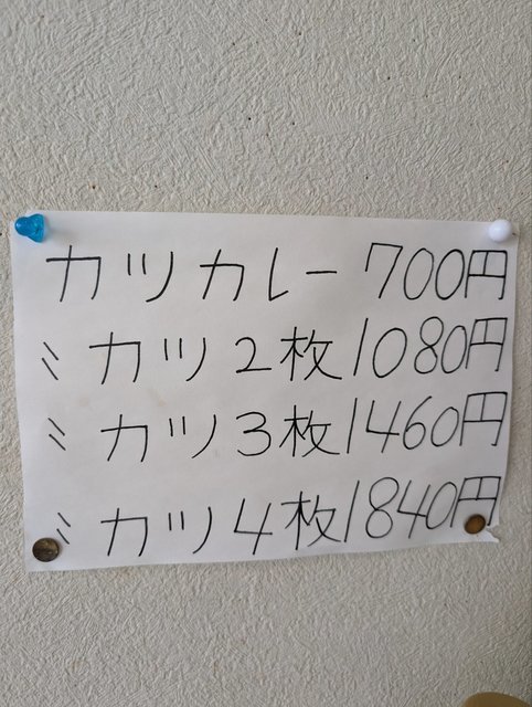 カツカレー(少なめ)1100円税込みを注文しました。因みに少なめと言っても総重量1kgあるそうで普通盛り(1200円税込み)は総重量1.5kgあるとのことで更に大盛りもあります。自家製コーヒーゼリーがサービスで付きカレーにはキャベツが添えられておりました。カツはサクサクで衣は卵が効いてフワっとしております。ジャガイモ、タマネギ、豚肉の入ったピリ辛マイルドなカレーで具材がゴロゴロ入っていて食べ応えがありました。私には少なめで丁度良かったです。 (投稿:2026/03/18 掲載:2026/03/18)