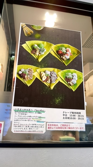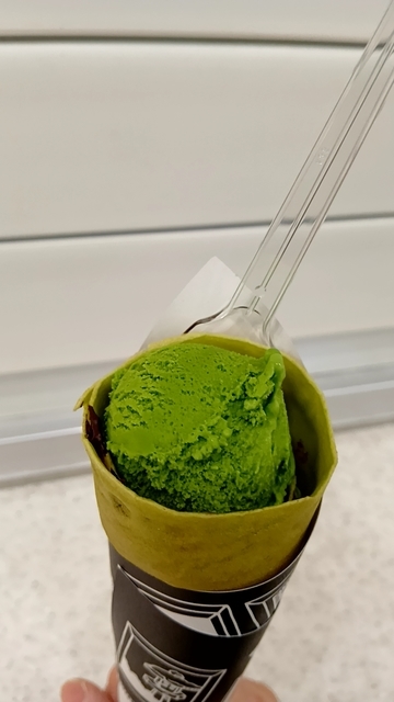 抹茶チョコクレープ450円にアイストッピング110円です。 抹茶のきれいな色のクレープ、もちもちしっとり美味しかったです。 (投稿:2025/12/31 掲載:2026/01/06)