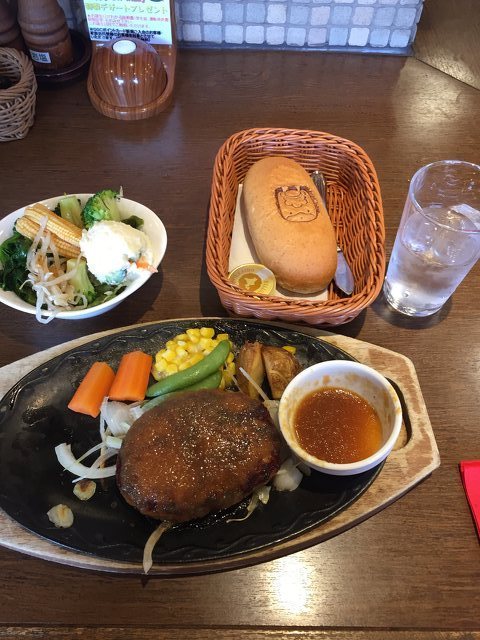 昨日イオンの帰りにランチで寄りました。 土曜日のランチタイムとあって待っているお客様もいたので家族でカウンターに座りました。 カウンターといってもテーブルの奥行きがあるのでゆったり食事を楽しめたので混んでいるときはテーブル席にこだわらずにカウンターに座ることをオススメします。 ハンバーグを注文して、サラダバーとスープ付き。 パンにはぐんまちゃんの焼印がとても可愛くて娘もパクパク食べてくれました。 サラダバーには今が旬の菜の花もあり、カットオレンジもあったので子どものデザートになりました。 ラインでお友だちになるとドリンクもいただけました。11周年キャンペーンでお会計の50%ポイント還元していただけたので次回は半額くらいで食べられるのが楽しみです(*^^*) (投稿:2018/04/08 掲載:2018/04/09)