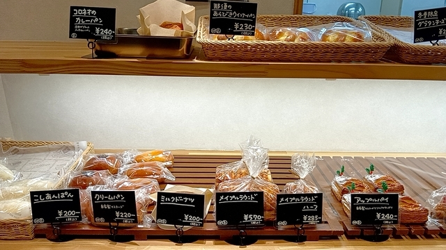 新しくできたパン屋さんです。 カレーパン240円、アップルパイ240円、コーンリュスティック280円です。 カレーパンは、手作りのフィリングでスパイシーで具材ゴロゴロで、美味しかったです。 (投稿:2025/12/26 掲載:2026/01/13)