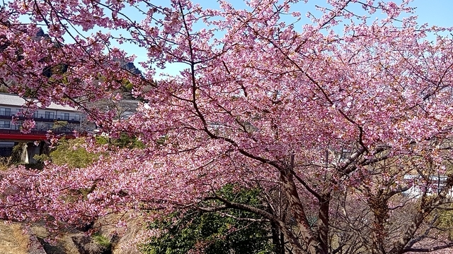 こちらの河津桜がきれいと知り、でかけてきました。 八分咲きくらいでしょうか。とってもきれいです。 天気もよく暖かい日曜日で、賑わっていました。 道の駅で、桜ソフトクリーム400円です。桜餅のように香り良かったです。 (投稿:2026/03/15 掲載:2026/03/17)