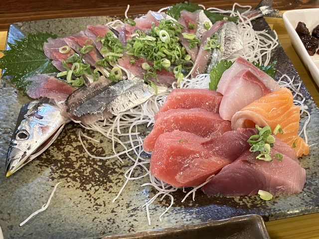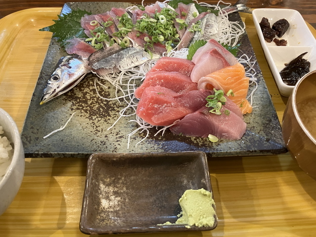 前橋新聞を見てランチに伺いました。20分前についてしまい駅前のけやき並木で時間をつぶして戻ったら10分前で3組5人待ち。インスタで調べておいた「新さんま刺身定食(刺身ちょっと添え)」にしました。店主おひとりで調理なので25分経って到着。新さんまは大ぶりで脂がのって期待通りの美味しさ。食べてもなかなか減らないのが嬉しいです。ちょっとのはずの刺身もちゃんと一品になる立派なボリューム。まぐろ、かつお、サーモン、はまちかな。どれも質の高いうまみを感じます。味噌汁、佃煮もいいお味。ご飯は普通盛りでがまん。夜なら中ジョッキ2杯はいけますね。税込1,430円と決して安くはないですが、お支払い以上の価値が十分あります。現金のみです。どんどんは「丼首領」らしいですね。また伺います。店主ご夫婦の接客も素敵。ごちそうさまでした♬ (投稿:2025/09/14 掲載:2025/09/16)