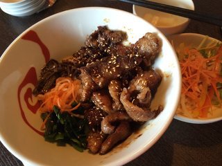 伊勢崎市民病院の西側にある、焼肉屋さんですね(*^^*)仙台牛を楽しめるお店ですが、今日はランチを目的とし来店しました。焼肉ランチもありますが、カルビ丼ランチを注文しました。注文後すぐにサラダ、スープ、お漬物が出てきました。最後にメインのカルビ丼ですねぇ❗️ラーメンの器にカルビがゴロゴロ入っています。お得感がありますね。 (投稿:2014/05/13 掲載:2014/05/14)