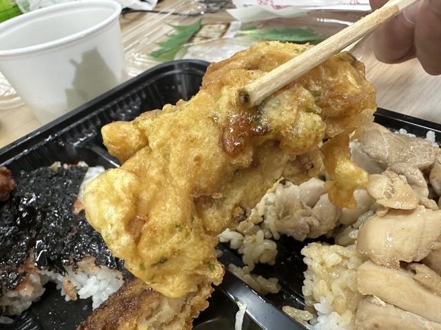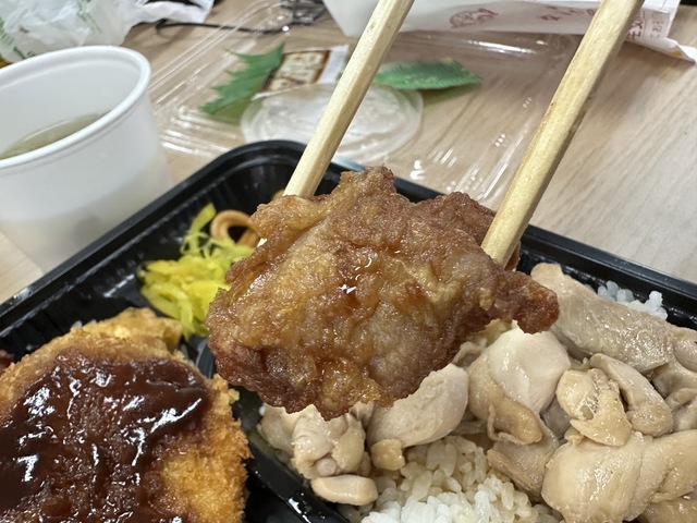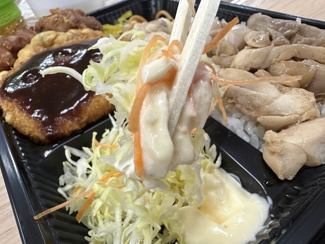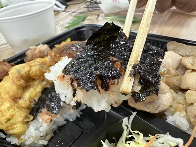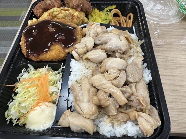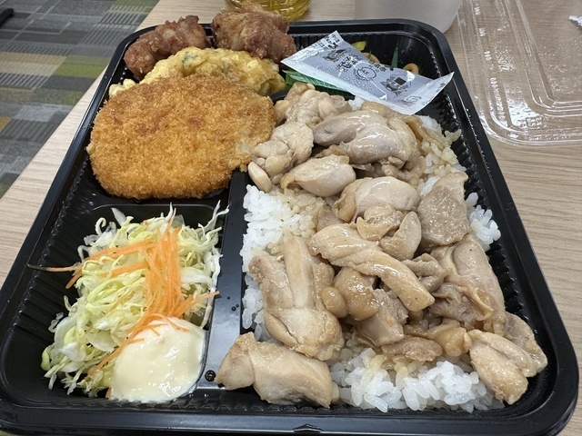 ●2026年3月27日(金) 曇。 ●本日の昼食は、群馬県高崎市北双葉町9-16にある『ほか弁 日本亭 高崎競馬場通り店』さんへ電話予約をして、弁当を配達していただきました。 ●今回は「満腹明太とりめし弁当(並盛)1,400円」をいただきました。 ●満腹明太とりめし弁当は、ご飯の上に鶏肉と明太子、海苔がのり、さらに唐揚げ・ちくわ天ぷら・野菜サラダ・コロッケ・スパゲッティなど、多彩なおかずが盛り付けられていました。 ●鶏肉の供給状況の影響か、唐揚げはやや小ぶりに感じましたが、しっかりした味付けで美味しかったです。 ●鶏肉は柔らかく、生玉子との相性が良くてとても美味しくいただきました。 ●コロッケは大きめで、ソースをかけて食べると満足感のある味わいでした。 ●全体的にボリュームがあり、お腹いっぱいになりました。 ●美味しいお弁当をオッフィスでゆっくり味わうことができ、また利用したいと思います。ご馳走様でした。 (投稿:2026/03/29 掲載:2026/03/30)