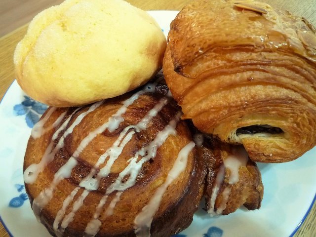 小さなかわいいお店のパン屋さん。店内の装飾が季節感いっぱいで素敵でした♪パンは甘い系からお食事系まで多種多様!トングもってどれにしよう、どれにしよう~と迷いまくりました。写真はチョコ入りデニッシュ、シナモンロール、メロンパンです。シナモンロールは、サックサク食感!! (投稿:2016/10/28 掲載:2016/11/09)