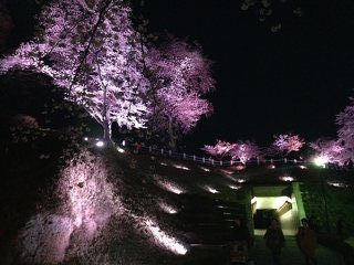 3月31日、夜桜を見に行きました。桜はほぼ満開でした。ライトアップのライトの色が時々変化して、幻想的な色合いになるのが面白かったです。この時期は公園内に屋台がたくさん並ぶのですが、屋根と壁のある仮設の食事処は寒さをしのげていいですね。 (投稿:2016/04/01 掲載:2016/04/04)