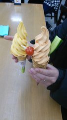 日曜日にみんなでお出かけした帰りに寄りました~☆ 《トマQソフト》と《アップルマンゴーソフト》のソフトクリームを頂いてきました♪ ソフトクリームすっごく美味しくてトマQソフトはヘルシーな感じです、アップルマンゴーは美味しくてまた食べたいです☆ お土産もいろいろあってみていてとても楽しかったです♪ ソフトクリームだけじゃなくお土産とかもいろいろ買いたいのでまた行きます( 〃▽〃) (投稿:2015/12/28 掲載:2016/01/02)