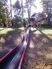 ぐんラボで見つけ、15年ぶりくらいに出かけました。駐車場料金も入場料金もかからない、お財布にやさしい遊園地。子どもは初めて行く場所で、「家からこんな近い所にこんなすごい遊園地が!!」と興奮気味でしたw1,000円=70円×17枚綴りのチケットを3組買って、親子3人(母+小学生2人)で十分楽しめました。(特にシューティングゲームが気に入った様子。)それでも子どもは「あれも乗りたい、これも乗ってみたい」と後ろ髪ひかれる思いだったようですが、ありがたいことに隣接する華蔵寺公園にも色々な遊具があるのでそっちで気が紛れたようです。(写真はその公園内のながーいすべりだいです。)こういう場所がある群馬に生活できて嬉しいな~と思える施設です。 (投稿:2015/11/03 掲載:2015/11/04)