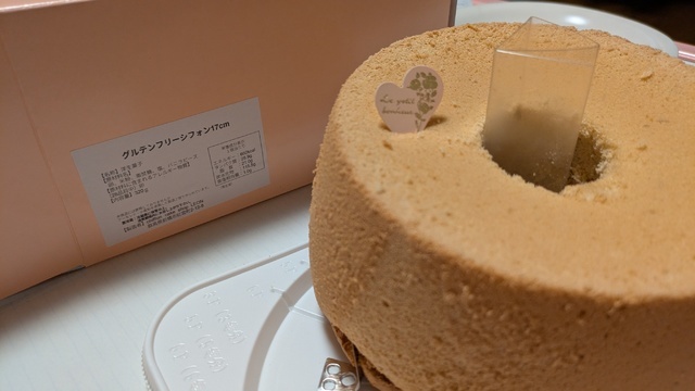 グルテンフリー生活を始めたので、食べ物をよく選ぶようになりました。ケーキは小麦を使っているからなかなか美味しい物も見つかりません。その話を聴いた知り合いが、このお店のグルテンフリーシフォンケーキを通販で贈ってくれました。解凍後の賞味期限は1日、二人でホールケーキを翌日まででペロリと頂きました。フワフワでモッチモチ、とてもシンプルで美味しい!絶対店舗に行ってみたい!と思いました!グルテンフリーでこんなに美味しいケーキに辿り着くとは⋯有り難いです! (投稿:2025/11/29 掲載:2025/12/01)