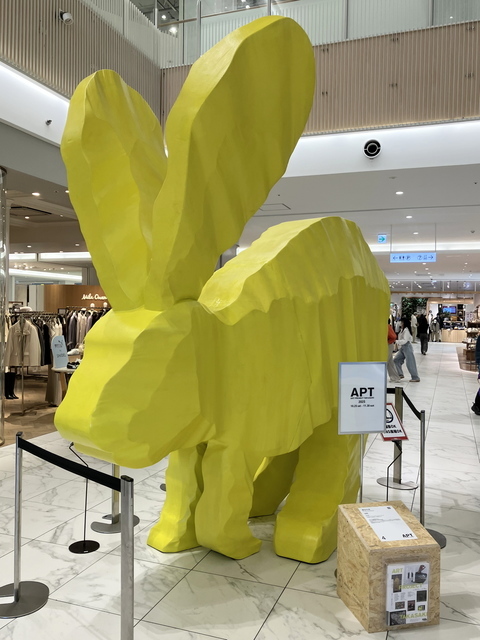 1Fのイオンスタイルで買物のあと、エスカレーターで2Fへ。中川政七商店の前にアートプロジェクトの大きな作品がありました。黄色いので後ろからみたらピカチュウの仲間みたいでしたがウサギでした。 (投稿:2025/11/15 掲載:2025/11/17)