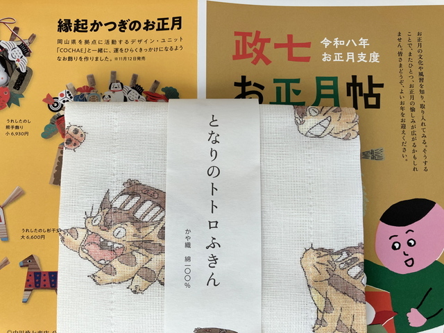 去年のえびす講市の帰りに買ったトトロのふきんは家族にあげてしまったので、今回は自分用を。同じシリーズのねこバスにしました。貯まっていたポイントも使ってお支払い。正月セールのおしゃれな冊子を頂きました♬ (投稿:2025/11/15 掲載:2025/11/17)