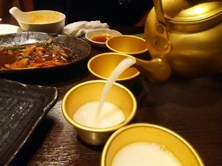 夜営業にはじめてうかがいました。どの料理もとても美味しかったです!特にきにいったのは、タン塩焼きとカルビ焼き。厚さ充分のタン塩は食べ応えありました。カルビ焼きは焼肉屋さんのカルビ焼きそのもの。ともにとても美味しかったです。お酒もいろいろあって、いろいろ飲みましたが画像ではマッコリを。ヤカンに入ってくるのですね。人数によって変わるのかもすが、普通にグラスなどに注がれているのよりも良いですね。 次回は是非もつ鍋をいただきたい! (投稿:2016/08/01 掲載:2016/08/01)