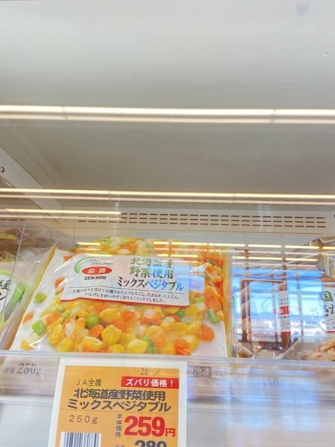 やばっ、楽しすぎる〜‼︎ 卵と野菜を買うつもりが1時間以上滞在してしまった。(^^;; 長野のJAファーマーズも楽しいけど、それ以上に楽しい。新鮮野菜はもちろんのこと、商品の品揃えがすごい‼︎肝入り感、大大です。仕入担当者様に拍手〜‼︎ もっと前から行っていたら良かった(^^;) 活気があってすごく良い感じのお店なので、まだの方はぜひどうぞ〜♪♪【写真の説明】マヨネーズたくさんの種類がありました。農協のミックスベジタブルはグリーンピースではなくインゲンなのでお気に入りです。ソジュン様のシリーズも充実‼︎ 店舗前で沖縄民謡とフラのステージをやっていて頂いたチラシです。 (投稿:2023/02/06 掲載:2023/02/06)