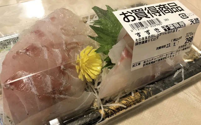 お隣のマックスで買い物のあとに。今日は千葉県産スズキがお買得でした。他ではなかなか見かけない魚がよくあって、さすが「うおかつ」ですね! (投稿:2023/01/07 掲載:2023/01/10)