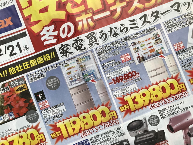 今日はチラシ掲載の冷蔵庫を。今年出たばかりのモデルをお得に買えました♬ とても省エネでびっくりですね。1週間もかからず配送して頂けて、安心して年を越せそうです! (投稿:2022/12/08 掲載:2022/12/09)