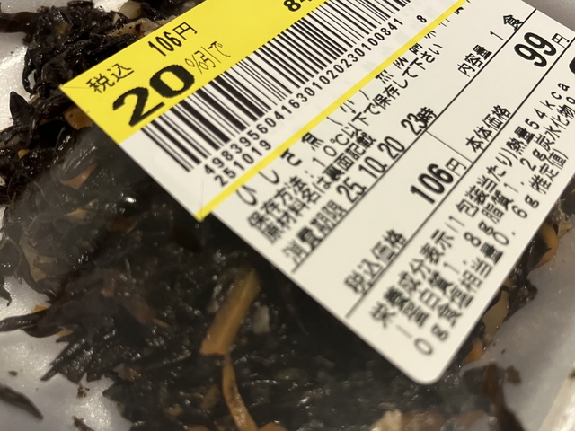 ガーデンズ探検のあとこちらへ。お刺身がお買得になっていましたが目当てのサンマは残念ながらなし。総菜コーナーでおつまみにひじき煮を買ってみました。こういうものが食べられる歳になりましたねぇ。。。 (投稿:2025/10/19 掲載:2025/10/20)