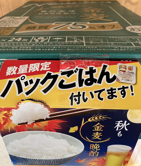 出かけた帰りに「金麦糖質75%オフ」の仕入れに寄りました。前回おまけで付いていたチキンラーメンは美味しく完食。今回はパックごはんが付いた限定品を買えました。お支払いに楽天ペイを使えたので現金ゼロで済みました♬ (投稿:2025/10/18 掲載:2025/10/20)