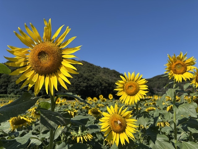 行ってきました!秋のひまわりって珍しいですよね。家族連れや施設の方々を中心に賑わいを見せていました。ひまわり自体は気持ち、小さい気がしますが、特に午前中は前向きに咲いてくれますのでぜひ一度ご覧になってみては! (投稿:2025/09/27 掲載:2025/09/29)