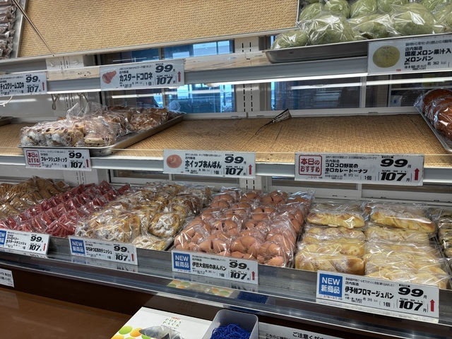 ここはみどり市より一回り狭くコンパクトなレイアウトで落ち着いてる。そして¥99パンコーナーは新作パン続出!フルーツリュスティック、抹茶大納言、カレーメンチパイ!他にも、桜あんぱんや伊予柑などあったが我慢笑。美味しいからって、つい買いすぎてしまう笑 (投稿:2026/02/20 掲載:2026/02/24)