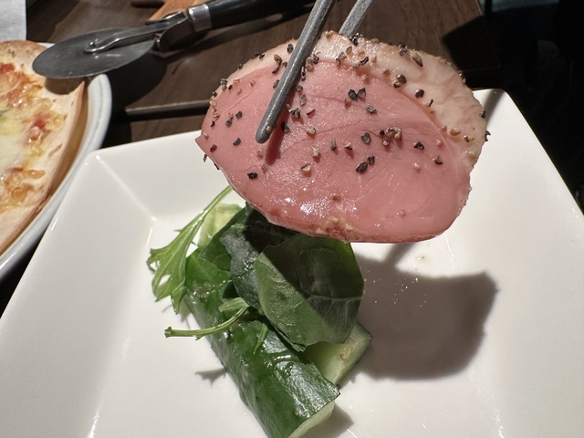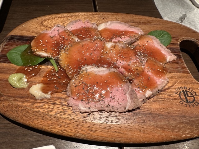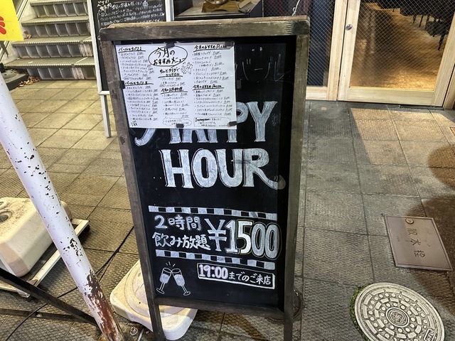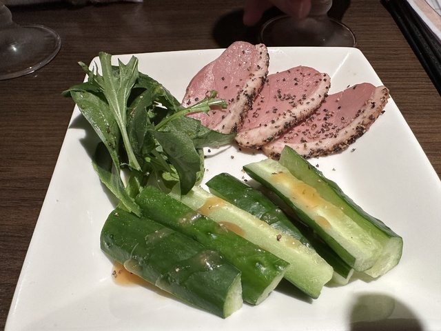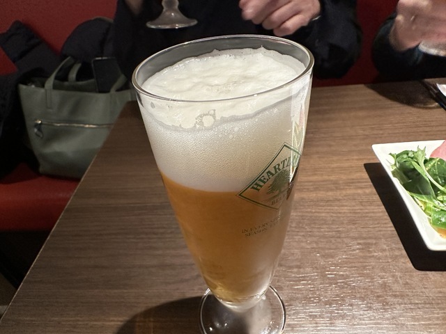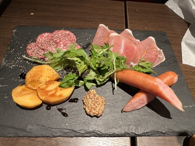 ●2026年1月8日(木) 晴 18:10訪問。 ●今回は、17:00〜19:00のハッピーアワー入店限定の「2時間飲み放題1,500円」を注文して女性店員に写真撮影の許可を頂きました。 ●先ずは、飲み放題の生ビールを頂きました。 ●生ビールは、ハートランドの生ビールで飲みやすくて美味しかったです。 ●料理は、「お通し400円」「マルゲリータピザ1,200円」「長ネギのフリット480円」「おつまみ盛り合わせ1,150円」「ローストビーフ980円」を頂きました。 ●お通しは、お皿に鴨肉、胡瓜、水菜が盛り付けてあり、お酒との相性が良くて美味しかったです。 ●長ネギのフリットは、リーズナブルな割に揚げたての熱々のネギがたっぷり盛り付けてあり、ヘルシーで美味しかったです。 ●マルゲリータピザは、お皿に薄い生地の上にピザソース、チーズ、モッツァレラチーズ、ミニトマト、バジルが盛り付けてあり、お酒との相性が良くて美味しかったです。 ●おつまみ盛り合わせは、お皿に大きなソーセージ、柿、サラミ、生ハム、水菜が鮮やかに盛り付けてあり、ワインとの相性が良くて美味しかったです。 (投稿:2026/01/12 掲載:2026/01/13)