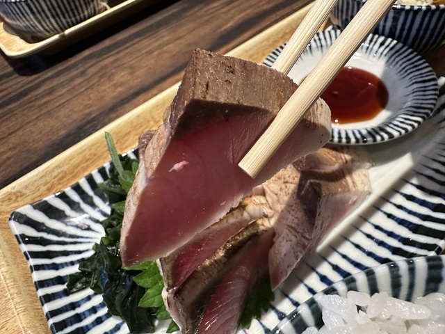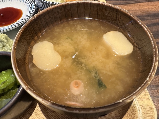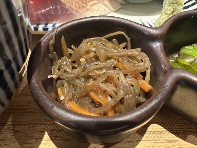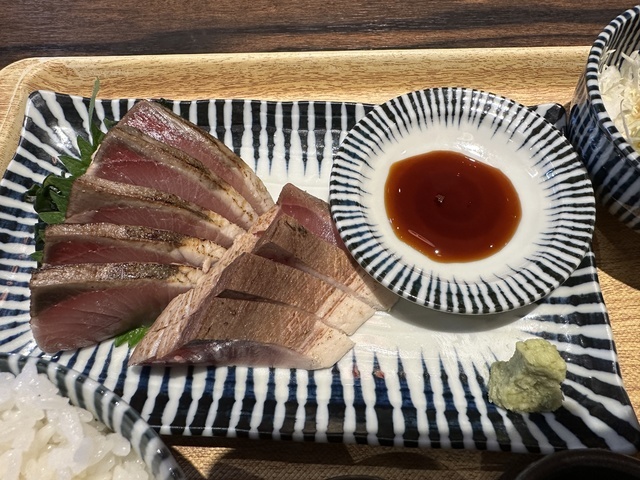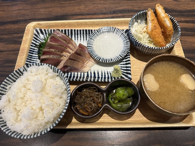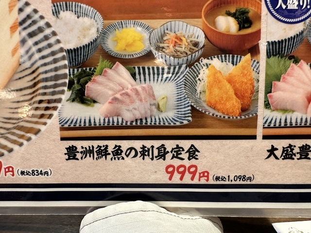●2025年10月28日(火) 晴 12:05訪問 12:19着膳。 ●今回は、「豊洲鮮魚の刺身定食(ヒラマサ+飯並盛+白身魚フライ+味噌汁+漬物+小鉢)1,098円」を「100円引きクーポン」を使用して998円で注文して女性店員に写真撮影の許可を頂きました。 ●冷たい麦茶を飲みながら待っていると14分後に発注した「豊洲鮮魚の刺身定食」が着膳しました。 ●本日の刺身は、アラマサでワカメと一緒にお刺身がたっぷり盛り付けてあり、山葵醬油を付けて食べたら美味しかったです。 ●白身魚フライは、キャベツの上に2切れの白身魚フライが盛り付けてあり、ソースを付けて食べたら美味しかったです。 ●味噌汁は、麩とワカメの入った薄味の味噌汁で美味しかったです。 ●代金の支払いでd払いが使用できるので大変便利だと思いました。 ●美味しいランチを味わう事ができるので、又、訪問したいと思います。ご馳走様でした。 (投稿:2025/10/30 掲載:2025/10/30)