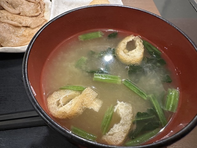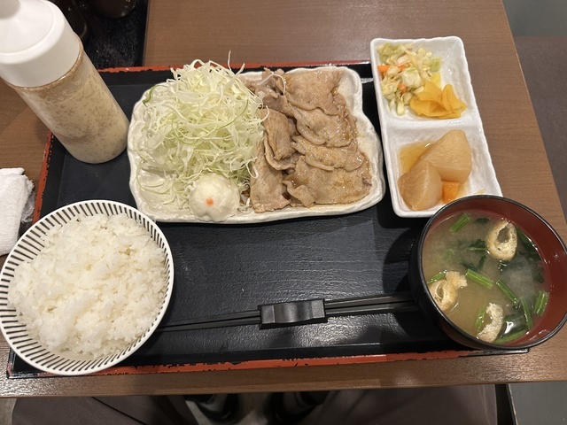 ●2026年3月4日(水) 晴れ。12時09分に訪問し、12時14分に着膳しました。JR高崎駅西口の温度計は13℃を表示しており、春らしい穏やかな陽気でした。 ●注文したのは「生姜焼き定食(生姜焼き+ご飯+味噌汁+煮物+漬物)1,050円」。写真撮影の許可も女性店員さんからいただきました。お冷やを飲みながら待つこと5分、料理が到着しました。 ◆生姜焼き…お皿にはキャベツ、豚肉、ポテトサラダが盛り付けられています。豚肉は柔らかく、甘めで口当たりの良いタレがよく絡み、とても美味しかったです。 ◆味噌汁…油揚げ、ワカメ、菜などが入り、出汁のきいた薄味で優しい味わいでした。 ◆煮物…大根と人参が柔らかく煮込まれており、控えめな味付けで食べやすかったです。 ◆漬物…大根・キャベツ・人参の漬物で、こちらも薄味で美味しくいただけました。 ●支払いにはSuicaが使用でき、さらにJREポイントも付与されるため非常に便利です。他にも魅力的な定食が揃っているので、また訪問したいと思います。ご馳走様でした。 (投稿:2026/03/08 掲載:2026/03/10)