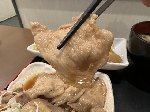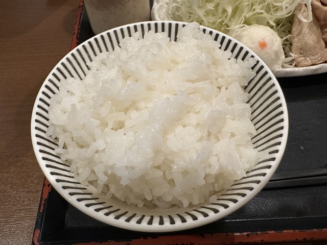 ●2026年3月11日(水) 晴れ。12℃を示すJR高崎駅西口の温度計を横目に、12:10に入店しました(12:15着膳)。 ●店内に入ると右側のカウンター席へ案内されました。小音量のBGMが流れ、落ち着いた雰囲気です。訪問時は先客が多く、その後も続々と来店があり、人気の高さがうかがえました。スタッフの方々は男女ともに親切丁寧で、気持ちよく過ごせました。 ●今回は「豚バラ生姜焼き定食(1,000円)」を注文し、写真撮影の許可もいただきました。 ●お皿には豚バラ生姜焼き、キャベツ、マヨネーズが盛り付けられています。お肉は柔らかく、甘みのあるタレがよく絡んでいて、口当たりが良くとても美味しい一品でした。味噌汁は油揚げと刻みネギ入りで、薄味ながら旨みがあり好みの味わいです。 ●生姜焼きをご飯にのせて“生姜焼き丼”にして食べると、さらに美味しさが引き立ちました。 ●支払いにはd払いが使えるため、キャッシュレス派としてはとても便利に感じました。 ●他にも魅力的な定食が多く、また訪れたいと思えるお店です。ご馳走様でした。 (投稿:2026/03/12 掲載:2026/03/12)