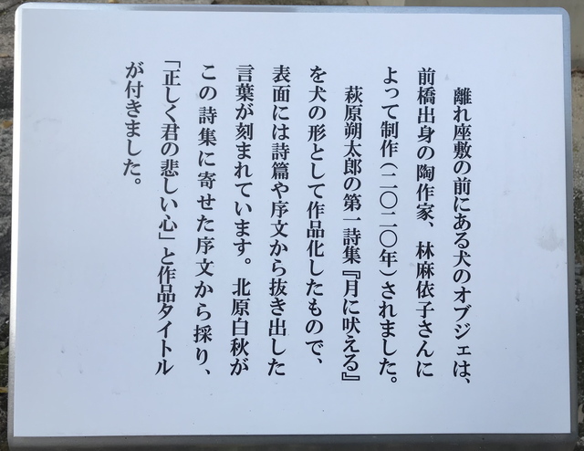 Pooh_5MT さん (男性/高崎市/50代/Lv.126)秋も素敵ですね。たぶん前回見落としてしまったのですが、離れの前に犬のオブジェが置かれています。前橋出身の陶作家さんが、朔太郎の詩集にちなんで2020年に制作されたそうです。訪ねるたびにちょっとずつどこかに変化がありますね! (投稿:2021/11/27 掲載:2021/11/29)
