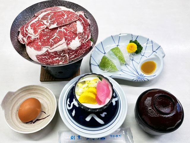 テッシー さん (男性/富岡市/50代/Lv.110)●2020年12月12日(土)晴 18:55訪問。 ●今日の夜は、群馬県甘楽郡下仁田町下仁田358にある『鍋屋』さんへ初訪問をしました。 ●緊急事態宣言が2020年5月14日(木)に解除されてからの店内飲食となりますが安全に配慮して、飲食時以外はマスクを着用していました。 ●お店に入り、予約をしておいた宴会用の別館個室へ案内されました。 ●室内は、個室で他の人がいないためプライベートが保たれて落ち着いた感じがしました。 ●先ずは、瓶ビールを頂きました。 ●料理は、予約をしておいたコース料理を頂きました。 ●コース料理は、刺身盛り合わせ、天ぷら盛り合わせ、すき焼き等の料理が提供されました。 ●刺身の盛り合わせは、マグロ、ハマチ、エビが鮮やかに盛り付けてあり、お酒との相性が良くて美味しかったです。 ●続いて、日本酒の冷酒を頂きました。 ●冷酒は、口当たり良い日本酒で美味しかったです。 ●天ぷら盛り合わせは、茄子、獅子唐、海老、舞茸の天ぷらが鮮やかに盛り付けてあり、冷酒との相性も良くて美味しかったです。 ●次に、ウイスキーのボトルを入れて「角ハイボール」を頂きました。 (投稿:2020/12/13 掲載:2021/03/19)