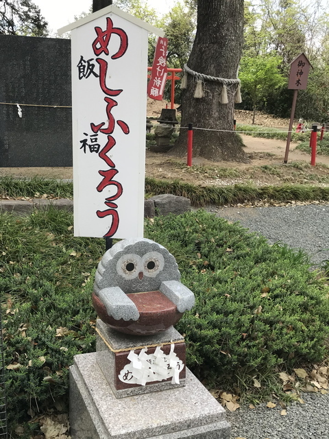 こじんまりした境内ですが、鎮座して680年以上の歴史を誇り、ご祭神は保食神(うけもちのみこと)。神社名から『いい福』が授かるといわれ、同じく神社名から『めしふくろう』が神社のマスコット、参拝者が撫でるのでゆるキャラのようになった狛犬が人気!