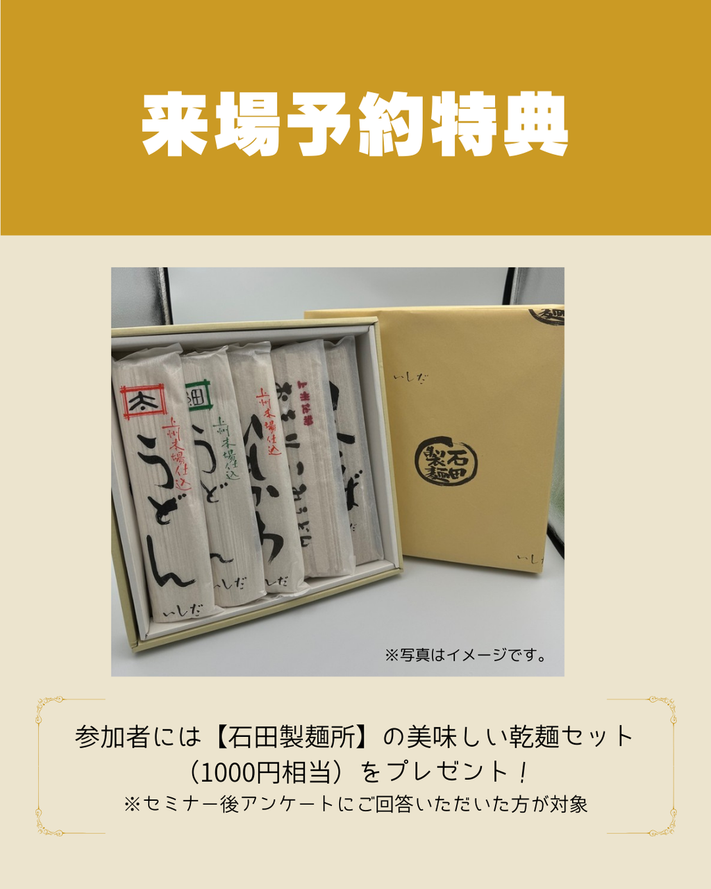 参加者には【石田製麺所】の美味しい乾麺セット(1000円相当)をプレゼント!