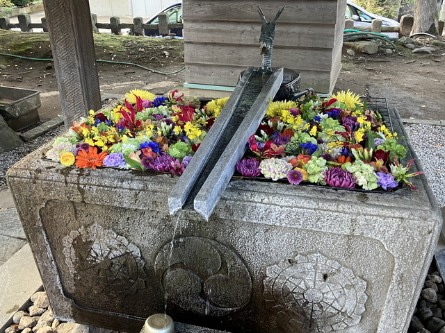 七五三シーズンの今日は、駐車場に係の方が二人も出てほぼ満車の大にぎわいでした。さすがですね。きれいな花手水で手を清め、おじゃまにならないようさっとお参りさせて頂きました。 (投稿:2025/11/01 掲載:2025/11/04)